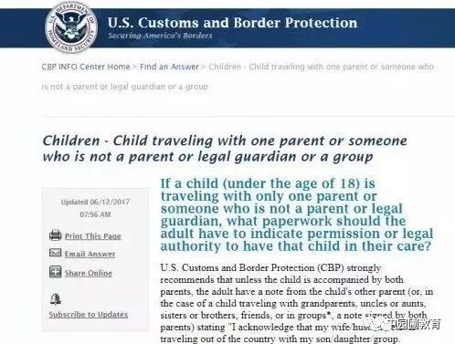 也就是说:入境美国,未成年人出入境须带这张纸,否则拒绝放行!