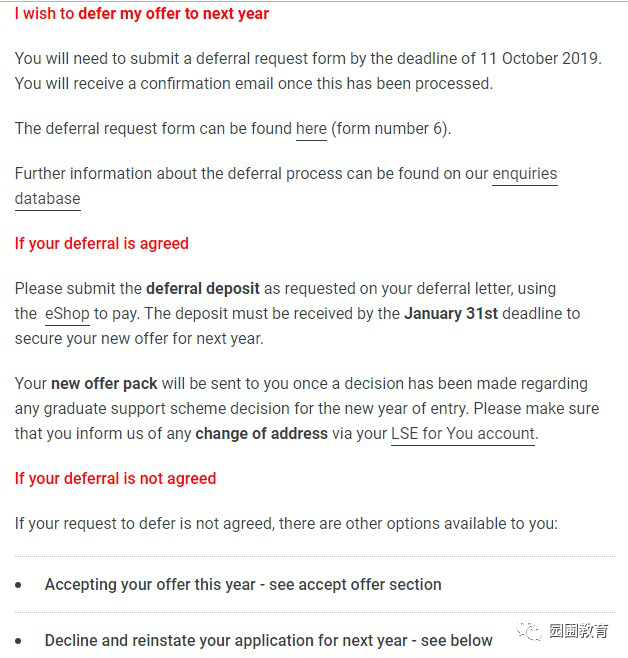 (2)以LSE为例需要在2019年10月11日前在线提交延期申请(今年网站上这部分信息还没有更新,延期一般在开学前提交申请)。如果延期成功,需缴纳延期押金。