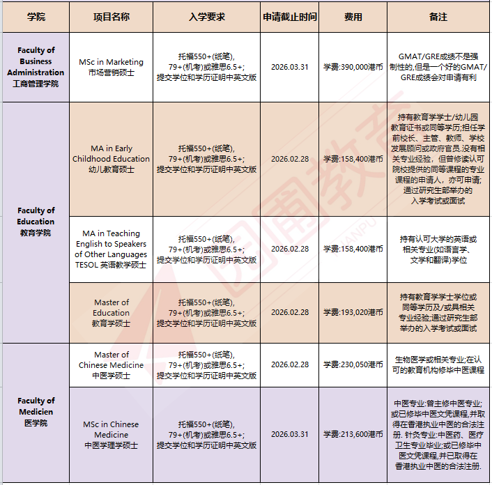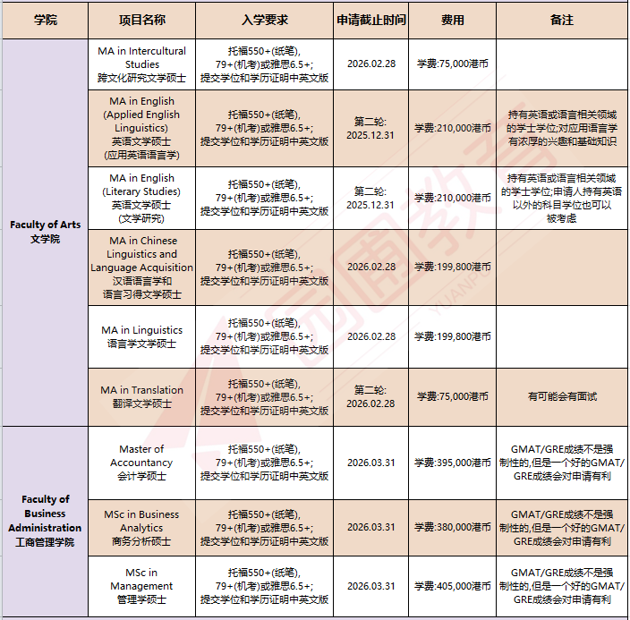 香港中文大学(The Chinese University of Hong Kong,CUHK)研究生项目