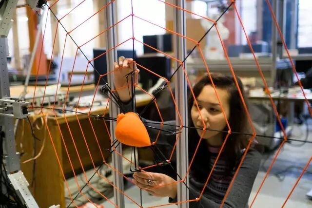在这个实验室中,有人正在查看软体机器人的运行状况;有人在通过观察蜘蛛网研究生物运动轨迹;也有人在操控着新型机器人。而这些人都在这个没有边界的实验室中互动和合作。