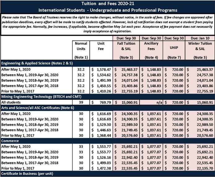 determined in June 2021. 基于2020-2021学年的学费,以加拿大元计算。 2021 – 2022学年度费用将于